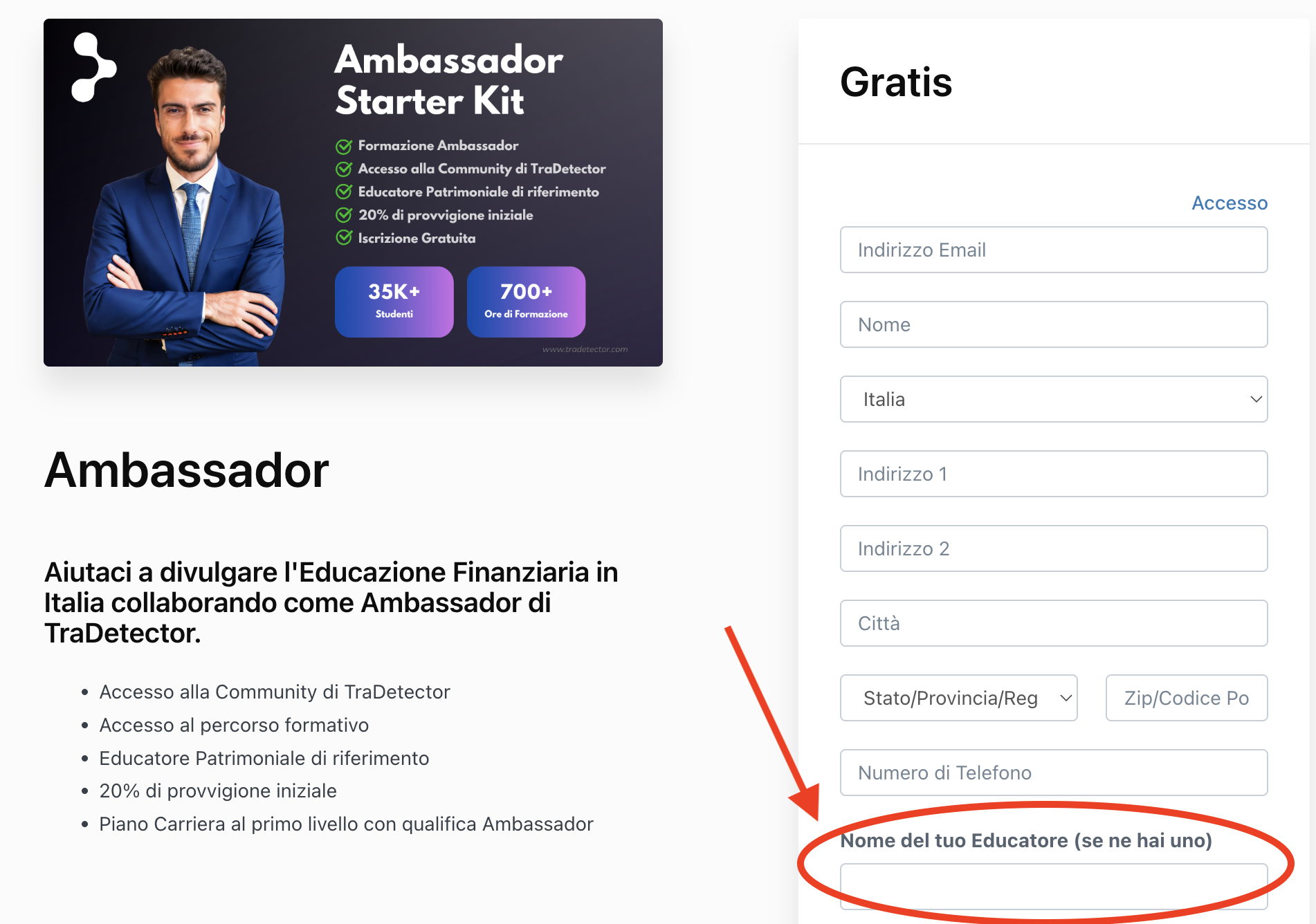 Se sei un Educatore Patrimoniale Qualificato, ti basterà che il tuo Contatto Ambassador inserisca il tuo nome e cognome nell'apposita sezione del carrello.